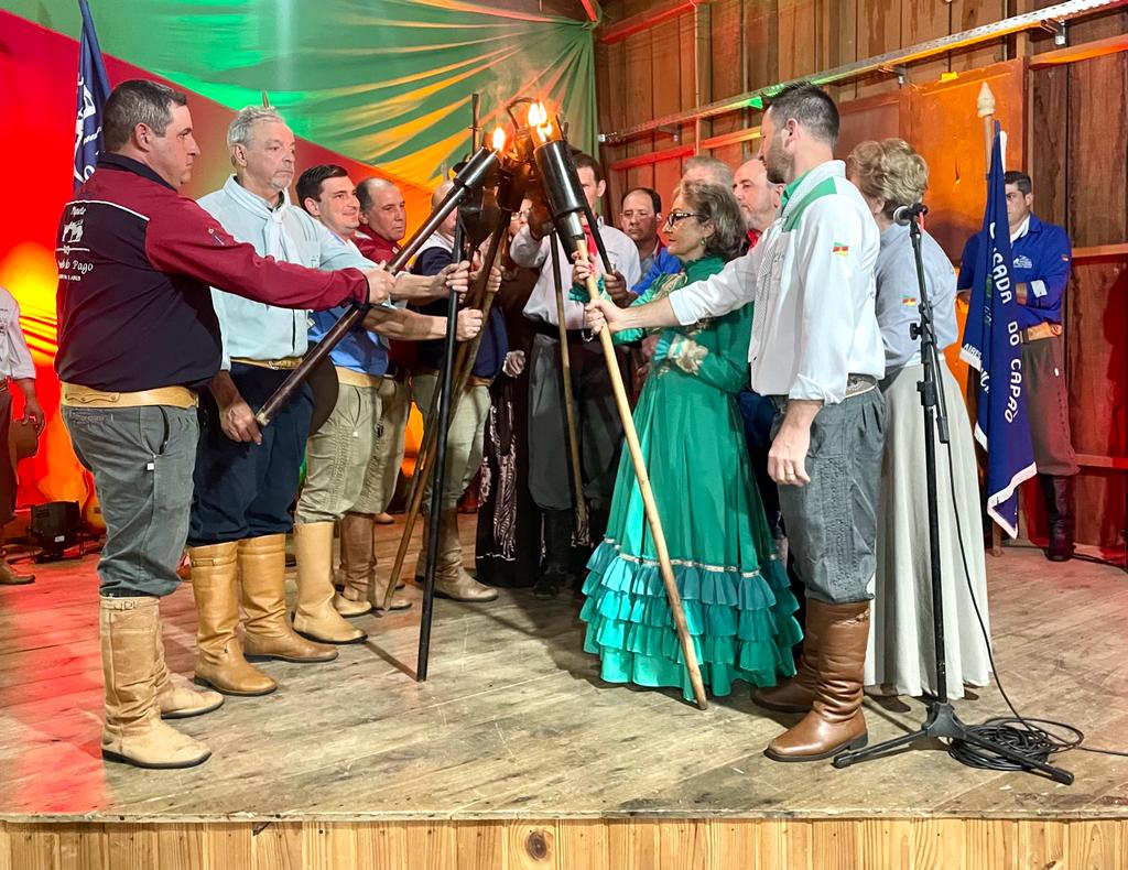 A sede do Grupo Folclórico (GF) Essência da Tradição, no Parque do Chimarrão, foi palco para os Festejos Farroupilhas de Venâncio Aires. O evento, na noite desta terça-feira (19), marcou a união das centelhas da Chama Crioula e celebrou a Semana Farroupilha, que teve a programação reduzida em solidariedade às vítimas do ciclone.