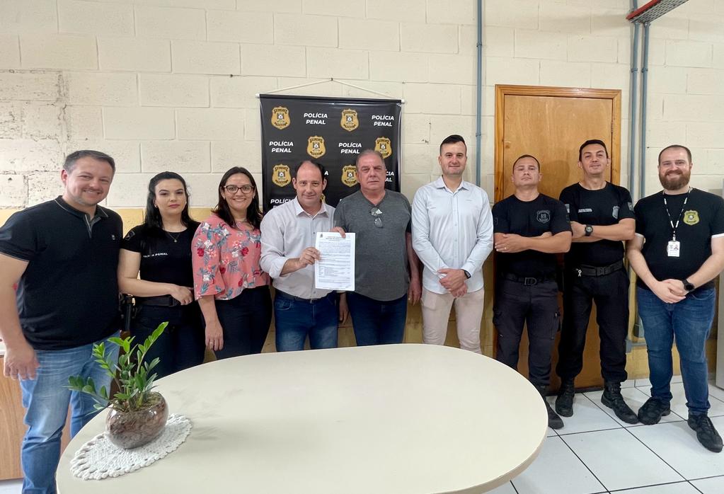 Sediado junto a Penitenciária Estadual de Venâncio Aires – Peva, o canil regional da 8ª Delegacia Regional Penitenciária, recebe do município, recursos de R$ 150 mil para aplicação no projeto “Ressocializando Vidas”. Com diversas atividades voltadas desde a prevenção e combate ao crime, resgates humanos, capacitação profissional de apenados até ações educacionais e terapêuticas com crianças, o projeto envolve 11 cães, de acordo com o treinamento de cada um. O repasse dos valores municipais foi oficializado na manhã desta terça-feira (14), entre o prefeito Jarbas da Rosa e o presidente do Conselho Comunitário da Comarca de Venâncio Aires, Flávio Bienert, em uma cerimônia que aconteceu na penitenciária com a presença de agentes e policiais responsáveis pelo projeto.