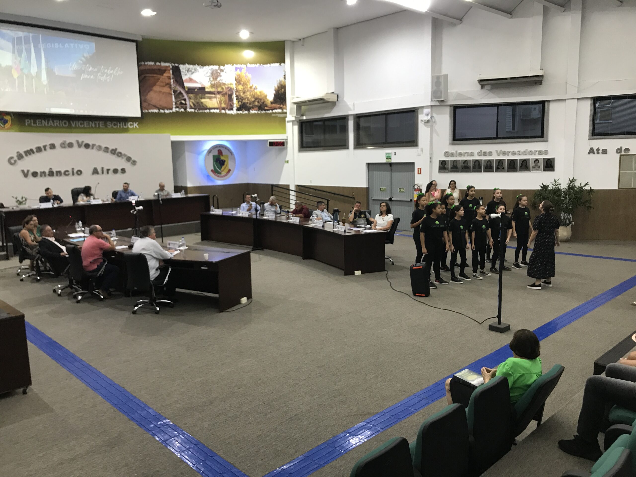 A noite desta segunda-feira, 05, foi solene na Câmara de Vereadores de Venâncio Aires para marcar o início do ano legislativo de 2024. Os trabalhos da primeira sessão ordinária do ano foram iniciados com homenagens e apresentação do Coral da Paresp. O primeiro encontro oficial não contou com a votação de projetos de lei, apenas a leitura das matérias que serão votadas no próximo encontro, agendado para quinta-feira, 08, que vai ocorrer de forma antecipada em função do Carnaval.
