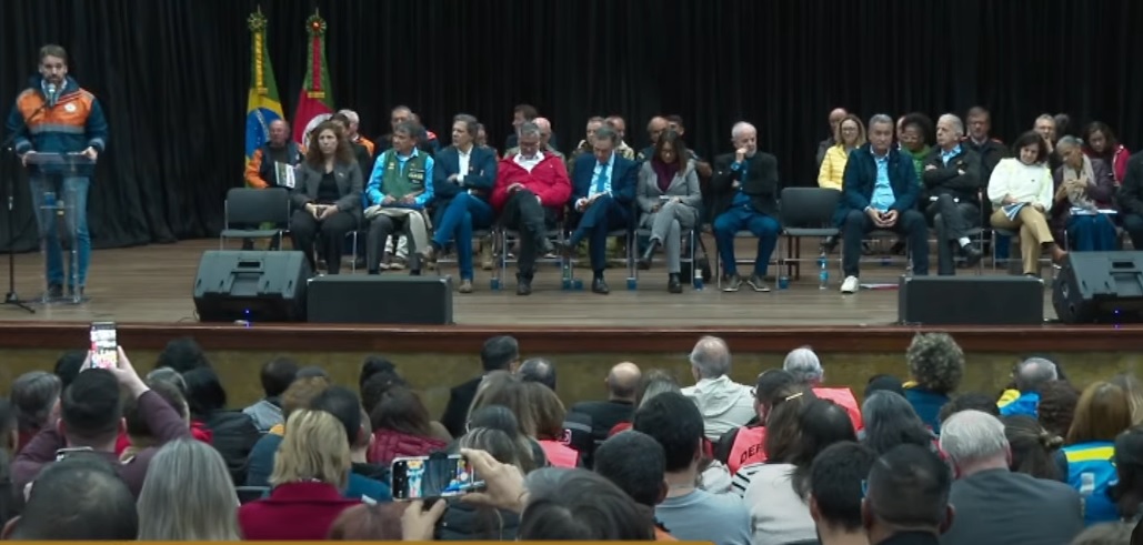 O presidente Luiz Inácio Lula da Silva (PT), realizou a terceira visita ao Rio Grande do Sul, nesta quarta-feira, 15, desde o início do desastre climático. A comitiva do Governo Federal realizou anúncios na tarde desta quarta, entre eles o pagamento de um benefício de R$ 5,1 mil para as famílias vítimas da enchente. A cerimônia presidencial ocorre no auditório da Universidade do Vale do Rio dos Sinos (Unisinos), em São Leopoldo.