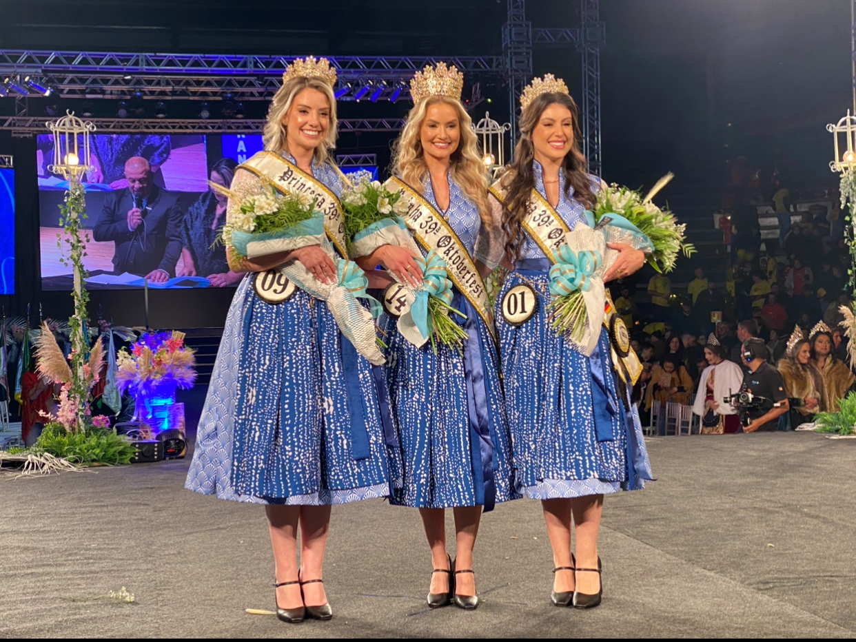 A 39ª Oktoberfest de Santa Cruz do Sul elegeu a sua nova corte de soberanas na noite deste domingo, 30. Os jurados escolheram como princesas Karoline Ribeiro Klaus de 27 anos e Nathalia Konzen da Silva de 26 anos. A rainha eleita foi Tatiane Caroline Voese D’Avila de 29 anos. A noite de escolha, que tinha 15 candidatas, e foi realizada no ginásio poliesportivo de Santa Cruz.
