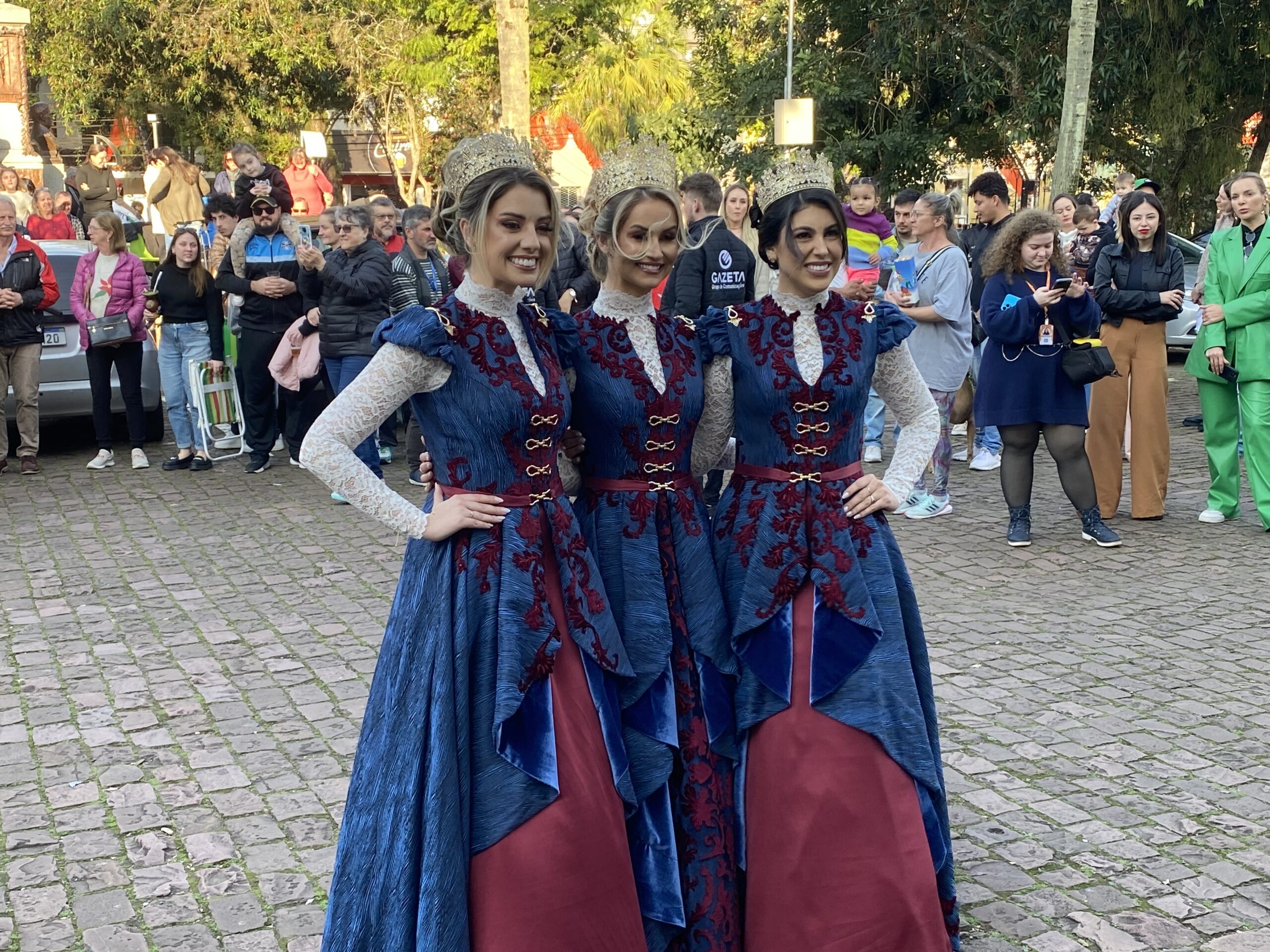 O espírito destemido dos imigrantes alemães que há 200 anos encararam o mar em uma jornada incerta em busca de um novo lar está estampado nos trajes do trio de soberanas da 39ª Oktoberfest formado pela rainha Tatiane Caroline Voese D’Avila, e pelas princesas Karoline Ribeiro Klaus e Nathalia Konzen da Silva. Os vestidos, oficiais e de passeio, foram apresentados para a comunidade em evento realizado neste domingo, 11, na Praça da Bandeira, e trazem consigo em cada detalhe, desde as cores até os tecidos, uma viagem no tempo que retrata a coragem, a esperança e a resiliência dos antepassados.