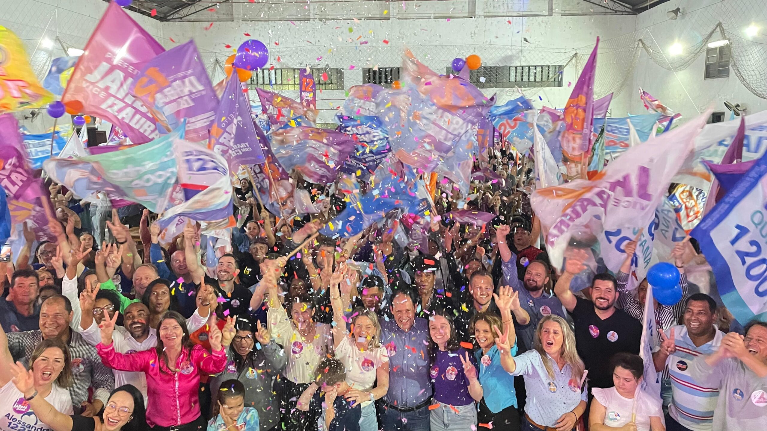 Nem a chuva da noite desta terça-feira, 1º, atrapalhou a presença e animação dos apoiadores do time do 12, no último comício oficial da dupla Jarbas da Rosa e Izaura Landim antes do pleito municipal. No Clube Sete de Setembro, dezenas de candidatos a vereadores da coligação “Para Frente Venâncio” (PDT, MDB, PSD e Republicanos) e centenas de militantes e comunidade em geral participaram do evento que foi marcado pelo clima de mobilização e confiança na vitória da dupla que vem governando o município nos últimos três anos e nove meses.