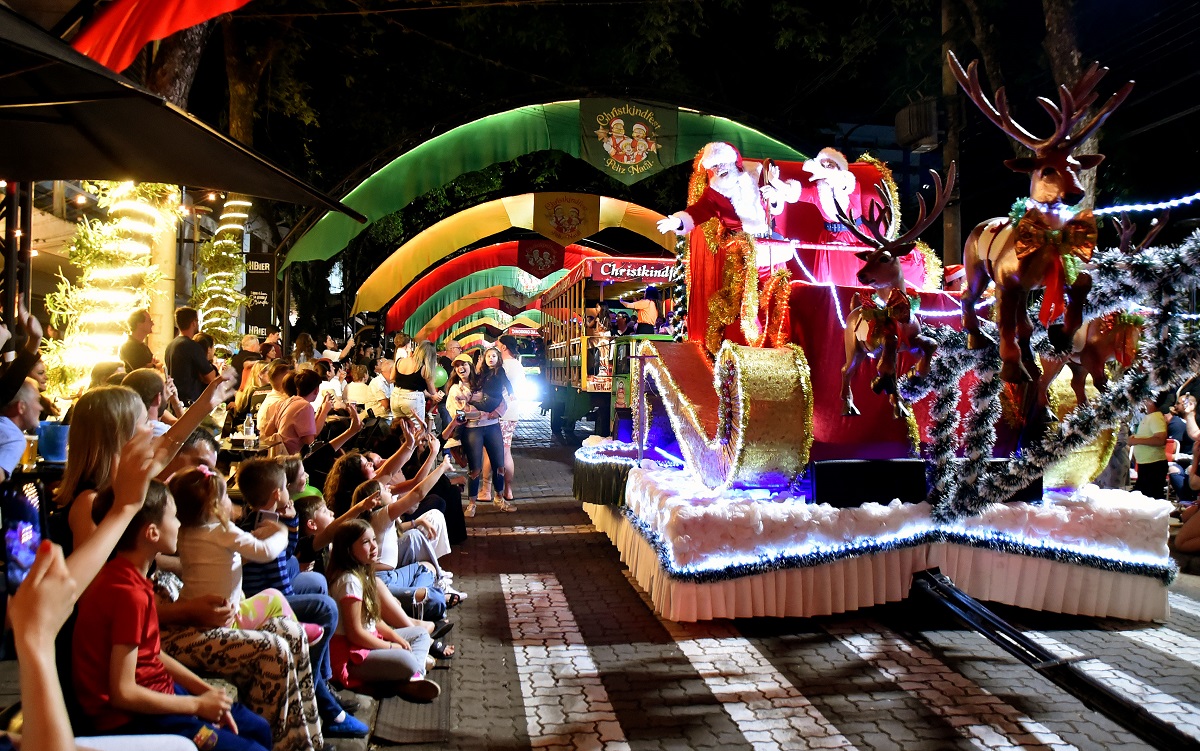 Outro ponto alto da Christkindfest serão os desfiles temáticos, programados para os dias 11, 18 e 21 de dezembro, sempre à noite. Com o tema “Natal Encantado: Os Sonhos dos Imigrantes no Ano do Bicentenário Alemão”, os desfiles contarão com 14 alas e sete carros alegóricos que remetem à tradição e aos sonhos dos imigrantes alemães. Entre os destaques, estão o Carro da Neve, que recria a construção da primeira árvore de Natal sob flocos artificiais de neve, e o Trenó do Papai Noel, que encerra o desfile em grande estilo, trazendo a alegria e o encantamento natalino.