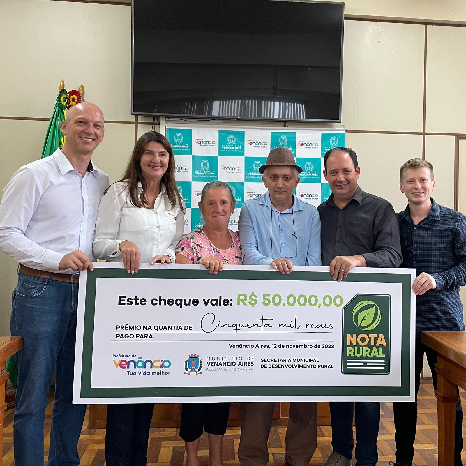 O prefeito Jarbas da Rosa confirmou a segunda edição do programa Nota Rural para 2024. O valor de R$100 mil será sorteado entre os agricultores em dia com o município, na próxima quarta-feira, 11, a partir das 9h, com transmissão, ao vivo, pelas redes sociais da Prefeitura. O programa, instituído em 2023, vai distribuir dez prêmios em dinheiro, sendo o primeiro de R$ 50 mil, o segundo de R$ 10 mil, e oito prêmios de R$ 5 mil. Ao todo, 8.761 cupons participam automaticamente do sorteio conforme emissão de notas fiscais de venda no talão de 4 mil produtores rurais de Venâncio Aires.
