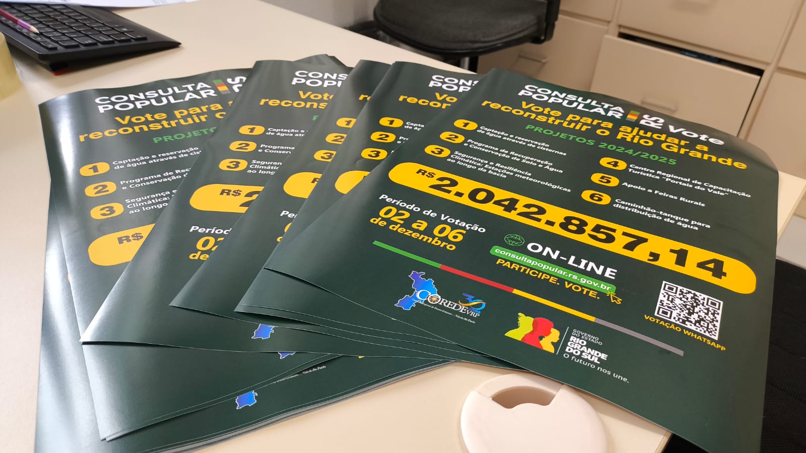 Qualquer cidadão poderá votar em uma das propostas da sua região (domicílio eleitoral). A cédula final de votação será composta por projetos eleitos em assembleias pelos delegados e Corede. A votação da Consulta Popular será realizada até esta sexta-feira, dia 6, às 23h59, totalmente por meio digital (online, offline e whatsApp), por meio do portal da Consulta Popular.