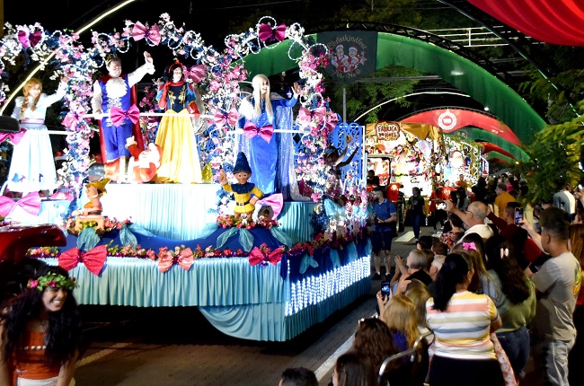 Com oito carros alegóricos, o desfile convida o público para uma viagem inesquecível pelos sonhos e memórias da infância dos imigrantes, em uma celebração da cultura local. A abertura ficará por conta de um carro com efeitos especiais de neve, em meio à montagem de uma grandiosa árvore de Natal.
