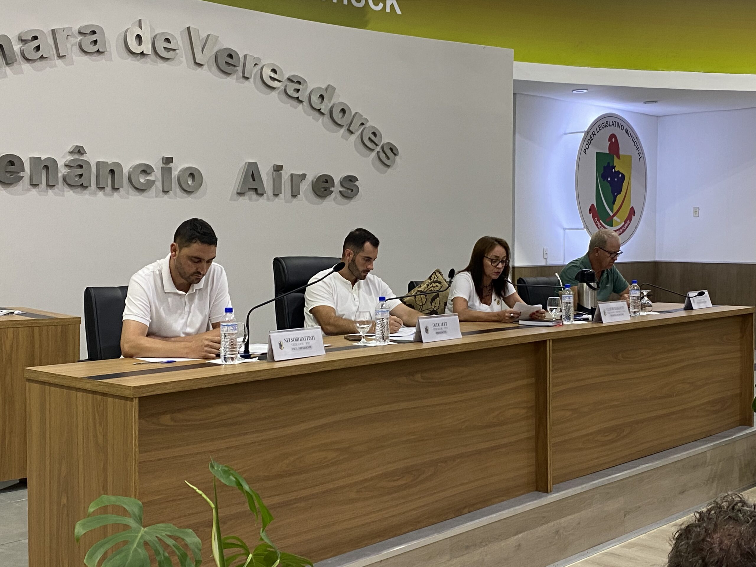 Outras matérias em análise incluem autorização para a concessão de uso de bens imóveis e móveis do Município a entidades e associações, como a Associação Hídrica São Francisco, Grupo do Lar Nossa Senhora Aparecida, Movimento dos Afrodescendentes de Venâncio Aires e Associação Venâncio-airense de Karatê-Do.