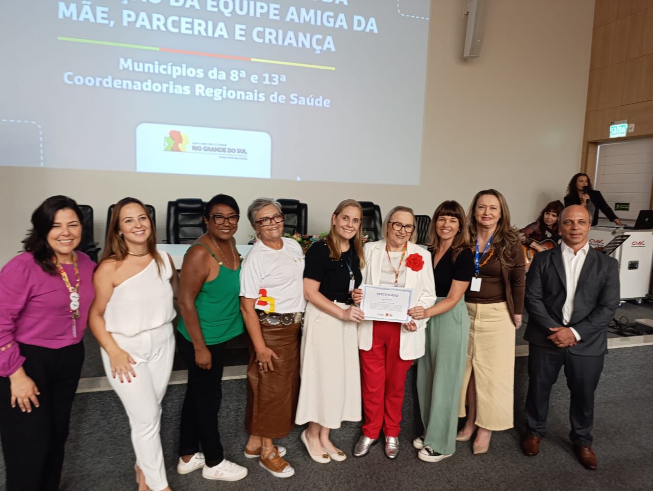Nesta sexta-feira, 28, a equipe da Estratégia de Saúde da Família (ESF) Macedo recebeu certificação como “Amigas da Mãe, Parceria e Criança”, reforçando o compromisso do município com a qualidade do atendimento para a população. A solenidade de entrega ocorreu no município de Cachoeira do Sul, e contou com outras cidades que integram a 13ª Coordenadorias de Saúde, do Vale do Rio Pardo.