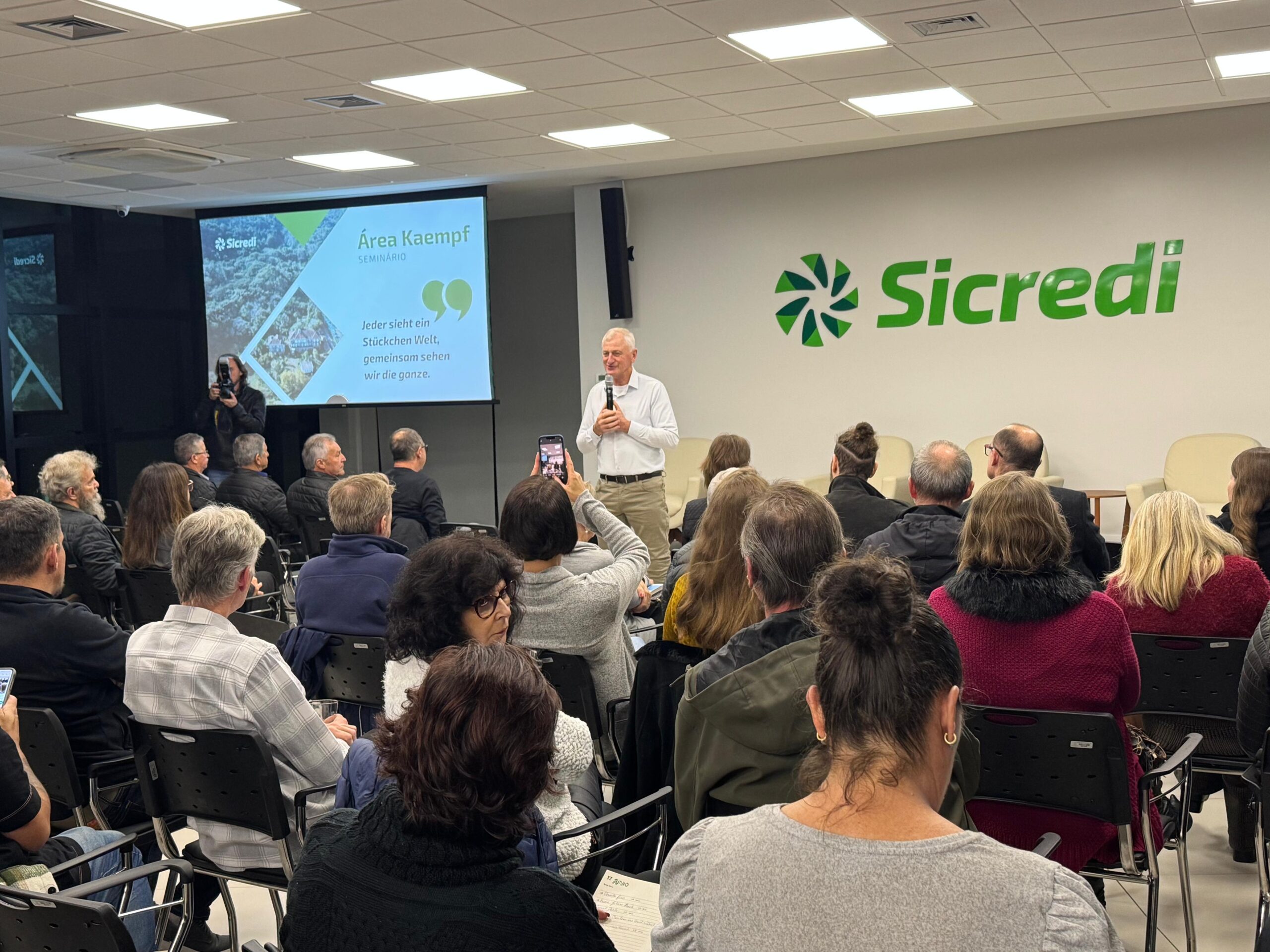 Entre os pilares que norteiam a atuação da cooperativa, o seminário foi um movimento de escuta ativa e troca com a comunidade regional. O evento iniciou com a contextualização de todo o cenário, tratativas, objetivos da aquisição do terreno e benfeitorias pela Sicredi. “É nosso compromisso envolver a comunidade nas decisões que impactam o futuro coletivo. Desta forma, estamos fortalecendo o cooperativismo e dando a oportunidade para que as pessoas participem no planejamento do destino, o mais assertivo possível, desta área de grande valor histórico, ambiental e cultural”, destacou o presidente da instituição, Heitor Álvaro Petry.