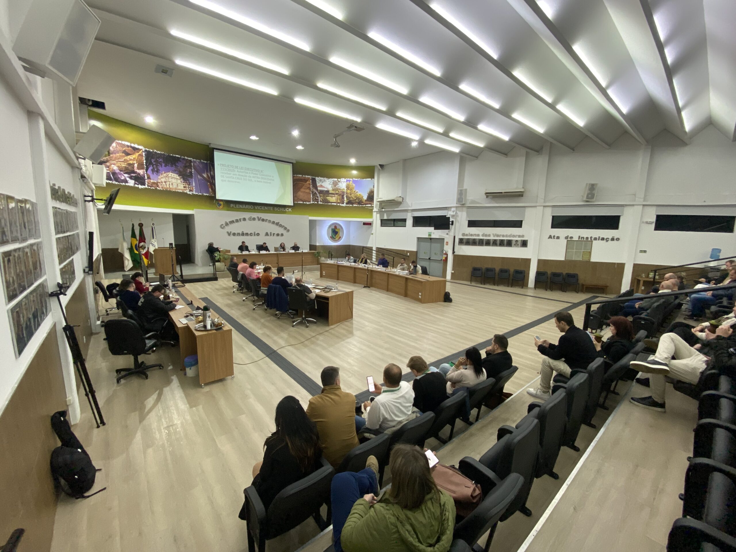 APROVADO POR TODOS OS VEREADORES O PROJETO DE LEI DO EXECUTIVO N° 0111/2025 que autoriza o Poder Executivo a receber em doação da MITRA DIOCESANA DE SANTA CRUZ DO SUL, o bem imóvel que descreve.