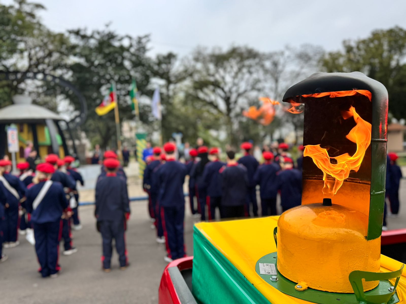 A Semana da Pátria será aberta oficialmente na manhã da próxima segunda-feira, 1º de setembro, em cerimônia a ser realizada em frente ao hospital São Sebastião, culminando com Desfile Cívico na rua Osvaldo Aranha, com início às 8h. do dia 7 de setembro e extinção da Chama do Fogo da Pátria, ao final das apresentações. Até lá, a guarda do Fogo Simbólico permanece agora sob responsabilidade do município, junto ao quartel da Corporação dos Bombeiros, simbolizando o compromisso com a memória, a identidade nacional e a formação de cidadãos conscientes e participativos.