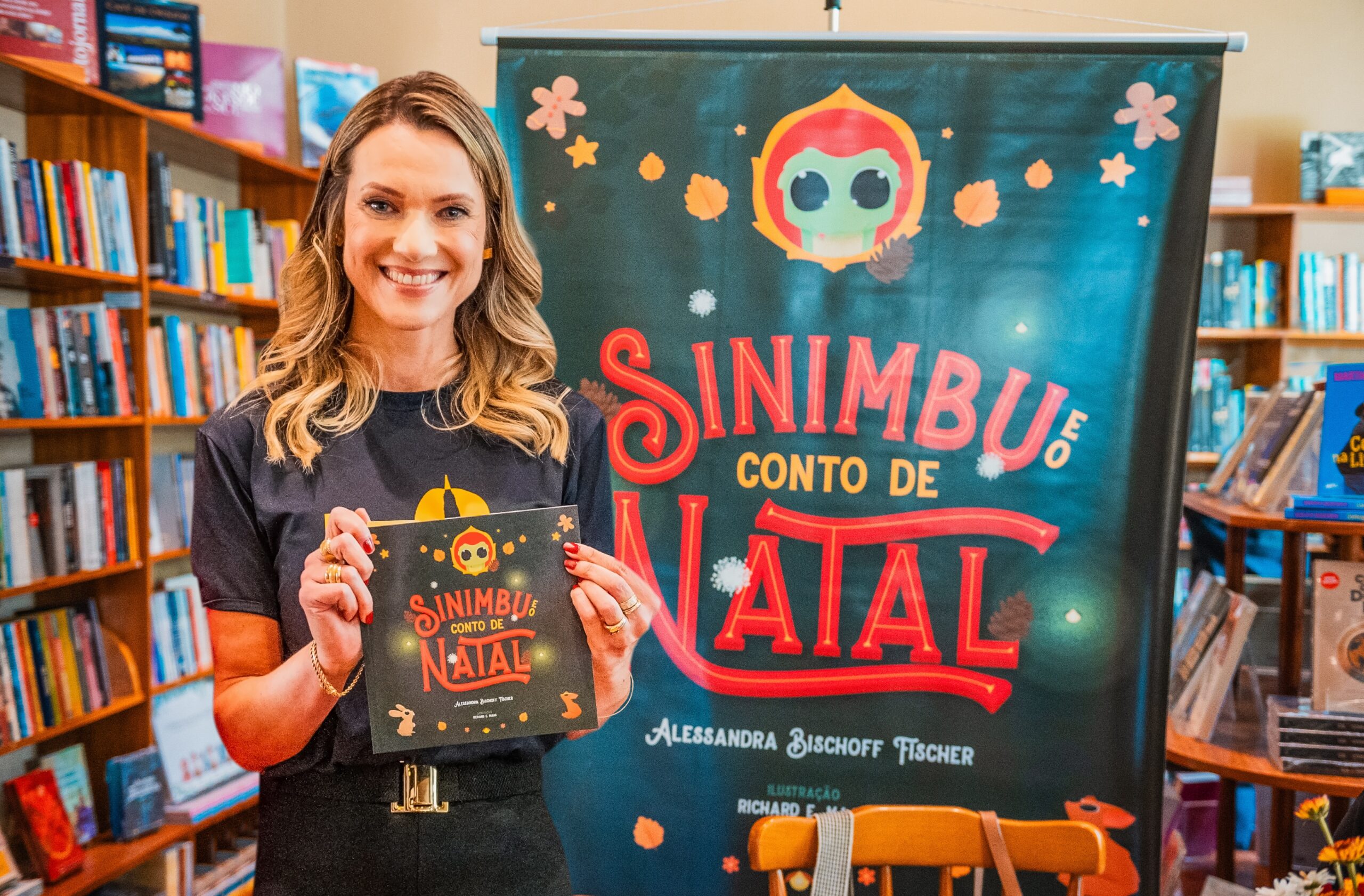 Durante a Oktoberfest de Santa Cruz do Sul, o estande do Fecomércio SESC/Senac recebe um encontro especial com a autora Alessandra Bischoff Fischer, que vai compartilhar a história por trás de seu primeiro livro infantil, “Sinimbu e o Conto de Natal”. O bate-papo acontece no dia 19/10, domingo, às 16h, e promete emocionar o público com relatos de solidariedade, cultura e tradição local.