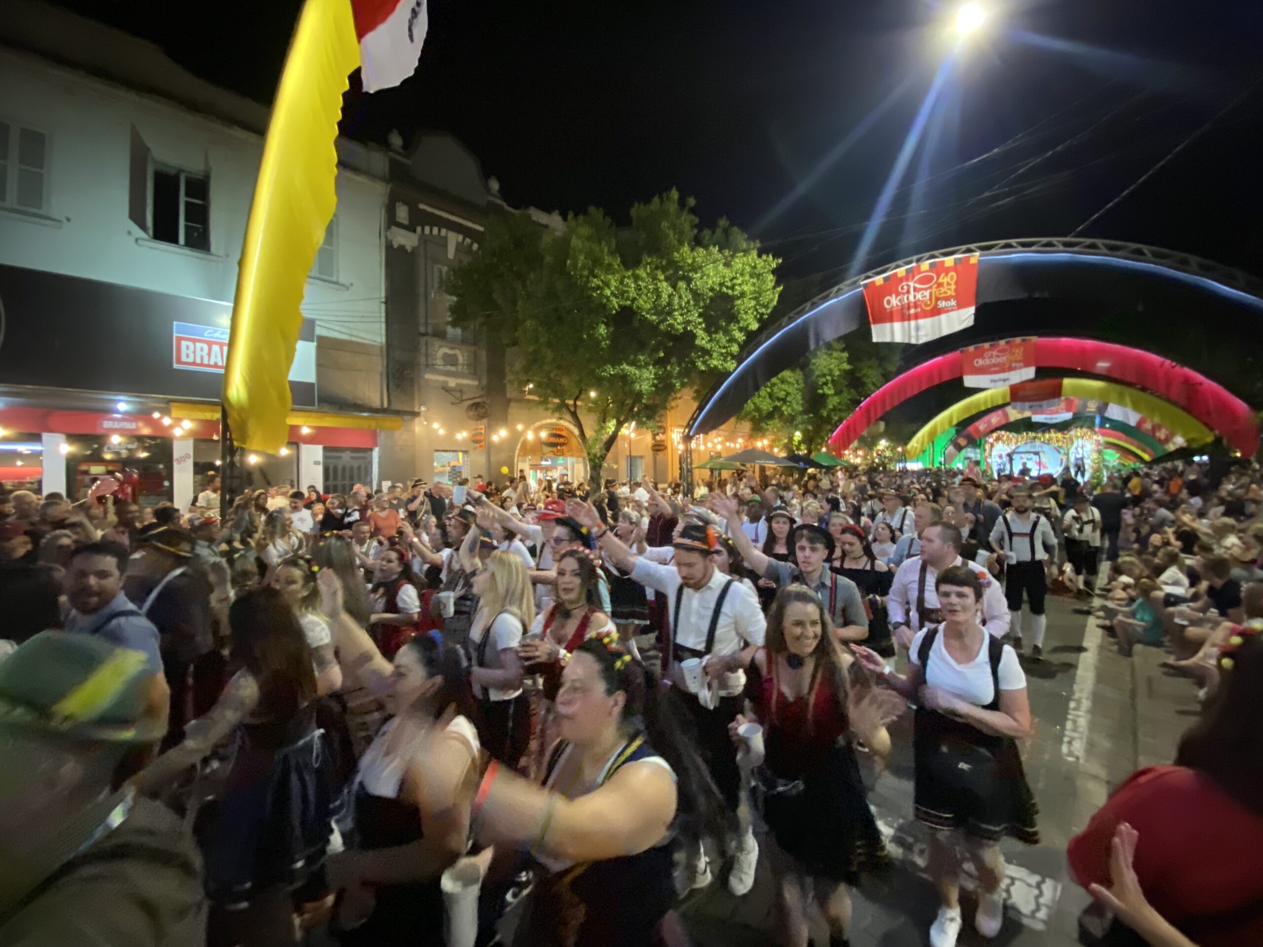 Com a presença de 6 mil figurantes e 10 alegorias, o evento celebrou os 40 anos da Oktoberfest em grande estilo, com carros iluminados e milhares de pessoas que lotaram as calçadas da Rua Marechal Floriano e depois o Parque da Oktoberfest. “A alegria e a animação dos figurantes, a beleza e grandiosidade dos carros alegóricos e excelente participação e interação do público, foram a marca registrada dos dois desfiles temáticos realizados”, destaca o vice-presidente e coordenador de Desfiles, Gilberto Luís Eidt.