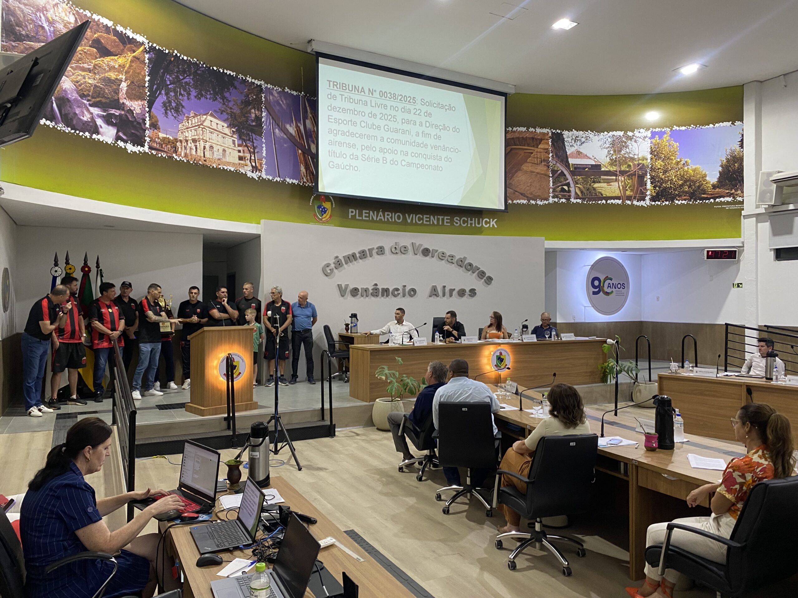 Durante a última sessão desta segunda-feira, 22, os vereadores aprovaram moção de aplauso ao Esporte Clube Guarani, pela conquista da Série B do Campeonato Gaúcho, no dia 07 de dezembro. A moção foi proposta pelos vereadores: Ezequiel Stahl (PL), Elígio Weschenfelder (PSB), Dra. Sandra Silberschlag (PP) e Jeferson Schwingel (PP).