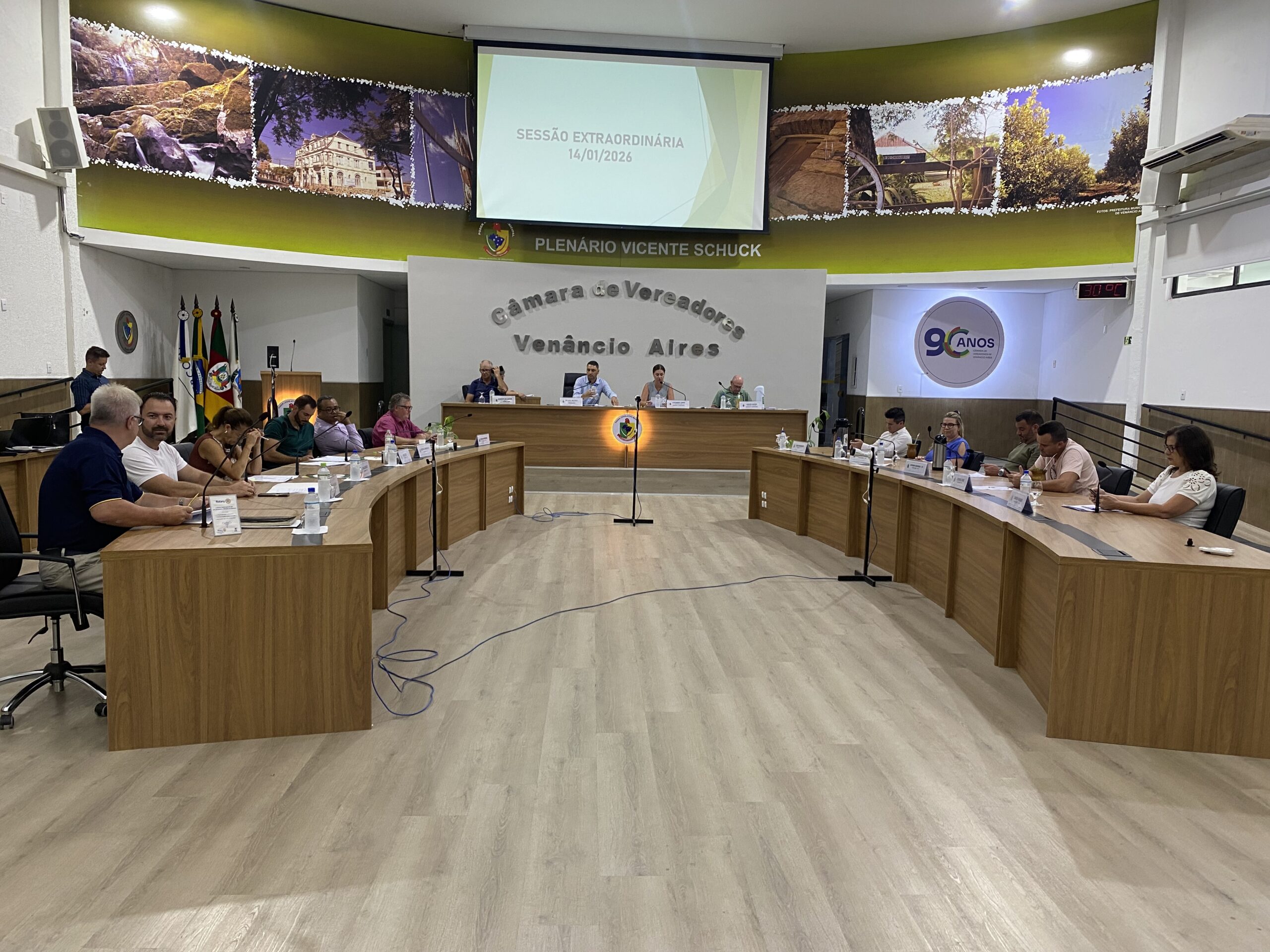 A Câmara de Vereadores de Venâncio Aires realizou, nesta segunda-feira (14), uma sessão extraordinária durante o período de recesso parlamentar. O encontro foi convocado pelo Executivo municipal para a apreciação e aprovação de projetos de lei voltados, principalmente, à revisão salarial dos servidores públicos.